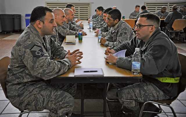 Twenty-one enlisted mentors spoke with junior Airmen about their experiences leading them to their current senior NCO rank. Though those being mentored were only given three minutes with each mentor, the purpose wasn’t to receive quick advice; it was to give the junior ranks the chance to form relationships with possible future mentors.