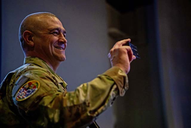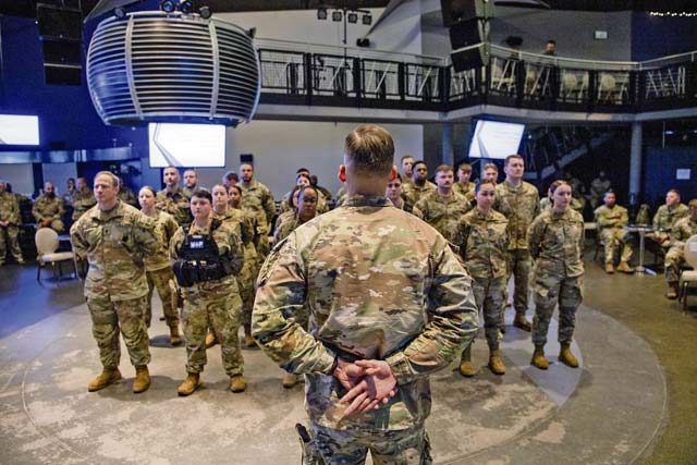 U.S. Air Force Col. James A. Cunningham, 86th Mission Support Group commander, speaks during the Kaiserslautern Military Community Police Week closing ceremony at Ramstein Air Base, May 17. Defenders across the Kaiserslautern Military Community celebrated Police Week through a series of challenges and events including an equipment demonstration, shooting competition, sports day and final guardmount ceremony to honor fallen security forces members.