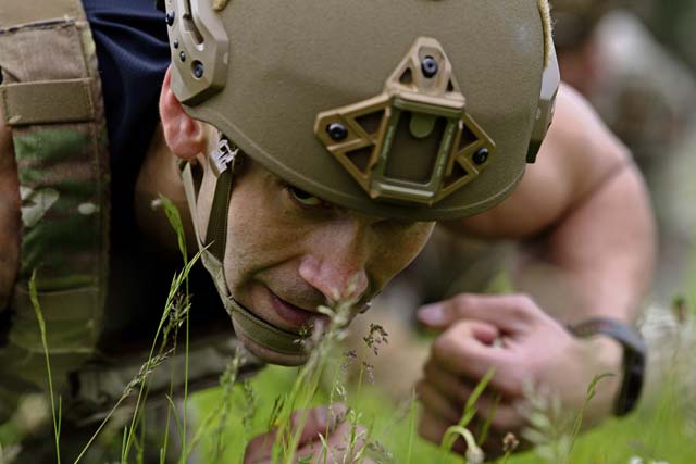 U.S. Air Force Capt. Julio Zayas, 86th Security Forces Squadron operations officer, crawls under wire during Defender Challenge at Ramstein Air Base, May 16. The 86th Security Forces Squadron regularly trains to produce proud, disciplined, mission-ready and resilient defenders.