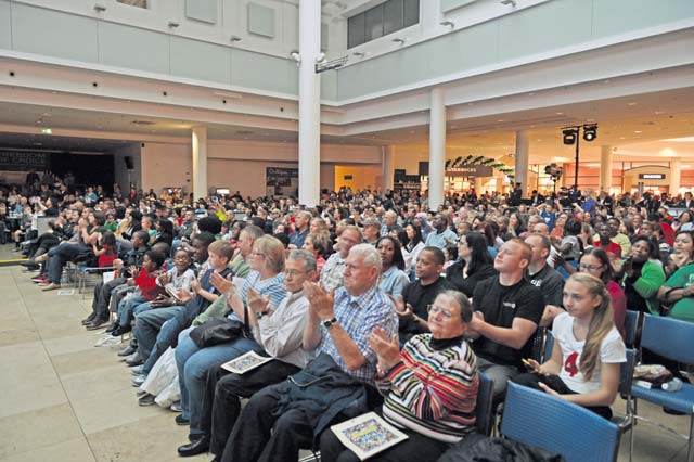 A full audience watches a Tops in Blue performance Sept. 13 in the KMC.
