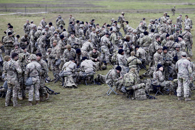 Candidates prepare gear and speak with one another about upcoming challenges they will face during the U.S. Army Europe Expert Infantryman, Expert Soldier and Expert Field Medical Badges, also known as E3B on Nov.8, 2023, on Vilseck, Germany. The E3B is designed to test candidates’ physical and mental abilities to increase unit readiness while executing critical individual and technical tasks while maintaining the integrity and history of each badge. (U.S. Army Photo by Sgt. Scott Sparks).