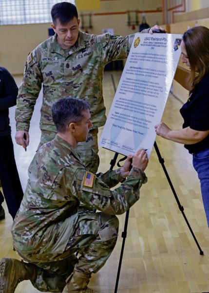 Prior to the Volksmarch, U.S. Army Garrison Rheinland-Pfalz commander, Col. Reid Furman along with Sgt. Maj. Raymond Wrensch and other garrison leaders signed a proclamation reaffirming the garrisons’ commitment to the Sexual Harassment and Assault Response Prevention Program.