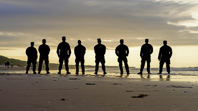 Soldiers assigned to 529th Military Police Company, 709th Military Police Battalion, 18th Military Police Brigade visits and takes unit photos at Omaha Beach 2 June 2024 at Omaha Beach, France. They reflected on the history and significance of the area as they prepare for their part in the 80th D-Day Anniversary. Photo by Staff Sgt. Tanisha Karn