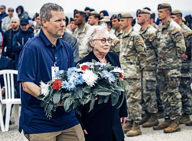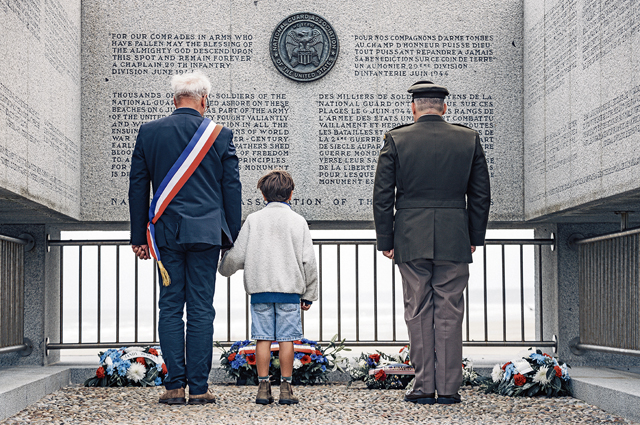 29th Infantry Division and 75th Ranger Regiment paid its respects to those who gave up their lives on Omaha Beach during D-Day by laying wreaths on the 29th Infantry Division Monument, Omaha Beach, France, June 2. Photo by Sgt. Benjamin Purcey