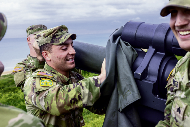 Sgt. Terrell Stokes, a military police officer from 529th Military Police Company, 709th Military Police Battalion, 18th Military Police Brigade, preps a cannon for the 80th D-Day Anniversary at Normandy American Cemetery and Memorial in Omaha Beach, Colleville-sur-Mer, France, June 4. Photo by Staff Sgt. Tanisha Karn