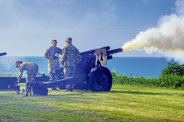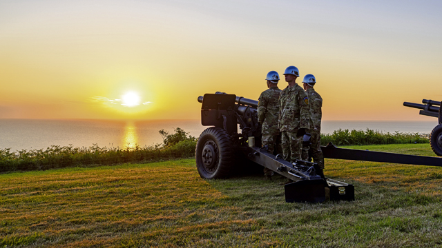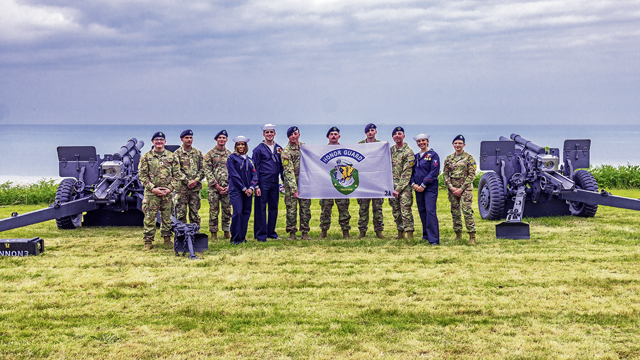Military Police Officers from the 529th Military Police Company, 709th Military Police Battalion,18th Military Police Brigade, attended the 80th D-Day Anniversary, and their cannons were used for the 21-gun salute at Normandy American Cemetery and Memorial on Omaha Beach, Colleville-sur-Mer, France, June 6. Photo by Staff Sgt. Tanisha Karn