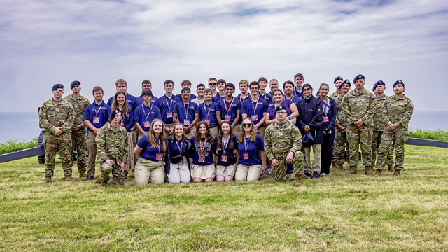 Military Police Officers from the 529th Military Police Company, 709th Military Police Battalion, 18th Military Police Brigade, invited high schoolers from Ohio, Indiana, and Kentucky who attended the 80th Anniversary of D-Day to learn more and take pictures of their cannons, which were used for the 21-gun salute at Normandy American Cemetery and Memorial on Omaha Beach, Colleville-sur-Mer, France, June 6. Photo by Staff Sgt. Tanisha Karn