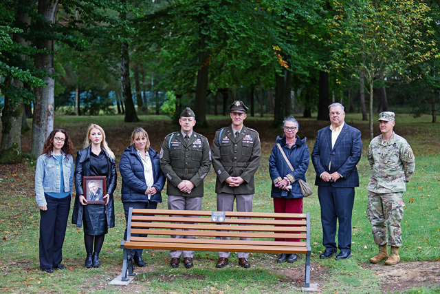 During the Gold Star Mother’s and Family Day recognition ceremony, USAG Rheinland-Pfalz dedicated a park bench with an inscription that reads, “To remember our Gold Star spouses and families, and to remember all our survivors that mourn them.”