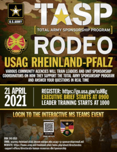 “We would love to have an in-person TASP Rodeo,” said Ivor Watson, USAG RP military personnel division chief. “That’s simply not possible. We have a great alternative to get the sponsorship information out to unit leaders from around the Kaiserslautern Military Community.”
