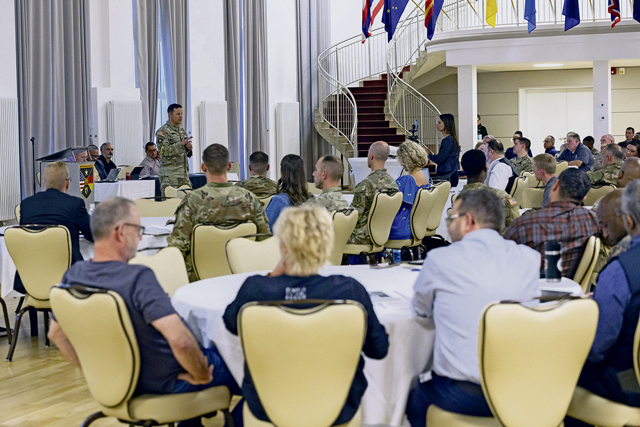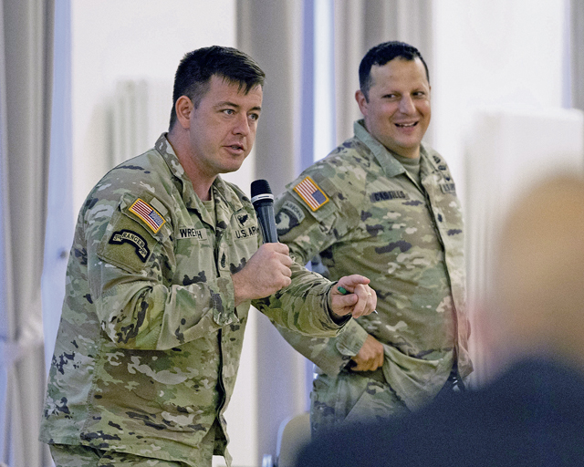 Command Sgt. Maj. Raymond Wrensch, USAG Rheinland-Pfalz, encouraged the audience to provide feedback, reminding the community that the command team may not be aware of all daily activities. He emphasized that this is a great opportunity for the community to provide them with information that garrison leaders can then address.