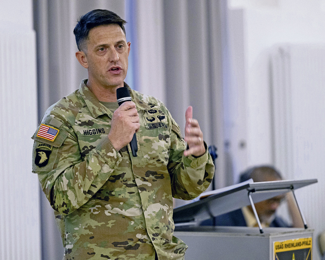 “Thank you all for being here this evening,” said Col. Jeffery Higgins, USAG Rheinland-Pfalz commander. “This town hall is about you and about this community. I view it as an important opportunity for face-to-face communication.”