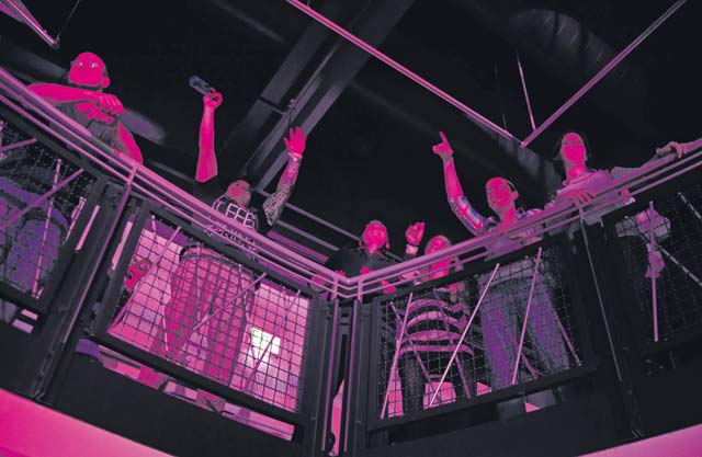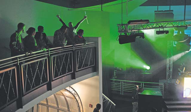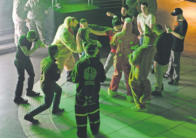 Members of the KMC dance to a song played by the Electronic Dance Music USO tour Jan. 31 on Ramstein.