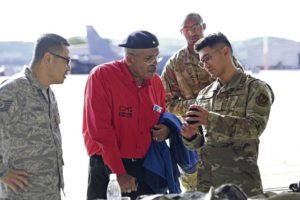 After the official ceremony, retirees visited aircraft static displays, military working dog demonstrations, and engaged with Airmen and Soldiers working on base. Retirees saw how the military is continuously evolving its equipment and capabilities, while current service members received insight on what retirees experienced while they served.
