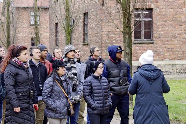 After submitting their reports and receiving feedback from both Lt. Col. Ketz and Prescott in a final videoconference, all 80 participants traveled to the site of the Auschwitz death camp complex to witness the horrific aftermath of the Holocaust. Here they took extended guided tours through the camps, participated in seminars coordinated through the memorial site, and visited nearby museums including the Auschwitz Jewish Center. Each night following the site visits, the 16th STB Chaplain, Capt. Jason West, led reflection sessions with the 16th STB leaders covering the challenging and often emotional experiences each participant faced.