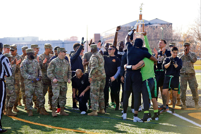 Soldiers from the U.S. military’s premier Chemical, Biological, Radiological, Nuclear, Explosives command proved their grit on the gridiron by winning the championship during the Aberdeen Proving Ground, Maryland, Turkey Bowl, Nov. 25.
