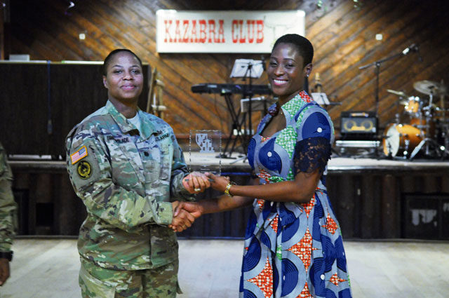 Sgt. Asi Dzietror, unit supply specialist, 21st TSC, who was the guest speaker at the event, shared her story of tenacity as she discussed her journey from a young child living in Africa to becoming an NCO in the United States Army this Spring.