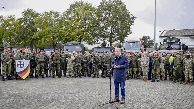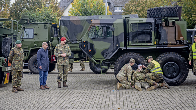 Köln, Germany — German Chancellor Olaf Scholz visited Luftwaffen Kaserne in Köln-Wahn Oct. 23, to observe a Bundeswehr and U.S. Army demonstration to showcase how NATO capabilities would set the theater to ensure territorial security and deter potential adversaries.