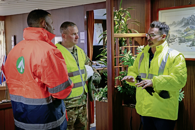 With safety conditions set, the port of Narvik was a hive of activity as personnel from the Army, Navy and their Norwegian partners worked alongside one another to ensure the download of equipment and prepare for onward movement by both rail and convoy by the appropriate host nation and joint military protocol.