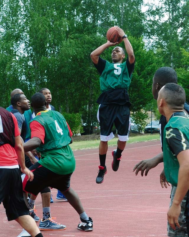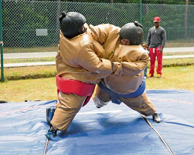 Soldiers and family members from the 21st Theater Sustainment Command’s Special Troops Battalion participate in the battalion’s annual organizational day July 9 at Pulaski Park. The event brought the battalion together to build camaraderie and esprit de corps through various sports tournaments, face-painting, a children’s bounce house and a food and a pie in the face competition, to name a few.