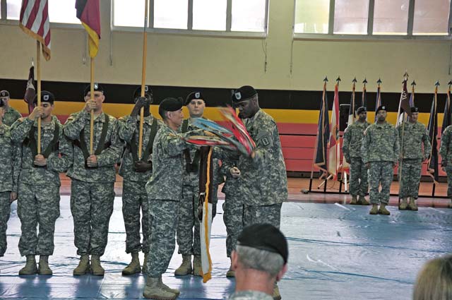 Soldiers from the 30th Medical Command furl their unit colors during a recent ceremony at U.S. Army Garrison Rheinland-Pfalz.