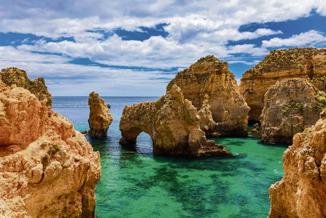 The enchanting coast of Portugal’s Algarve region is dotted with caves and rock formations formed over thousands of years. Ponta da Piedade is a very picturesque location; you can see captivating sandstone towers jutting from the turquoise waters below in harmonious contrast. For the best view you can rent a boat or kayak from Praia da Batata beach in nearby Lagos.