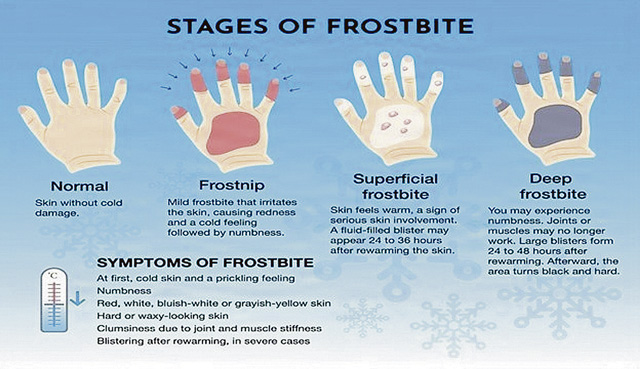 Another danger associated with extreme winter conditions that’s also measured in stages is frostbite.