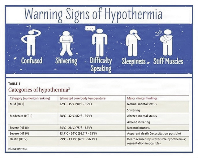 “Understanding the various stages of hypothermia and associated symptoms is extremely important,” she said. “If you suspect hypothermia, provide warmth and seek immediate emergency medical help.”
