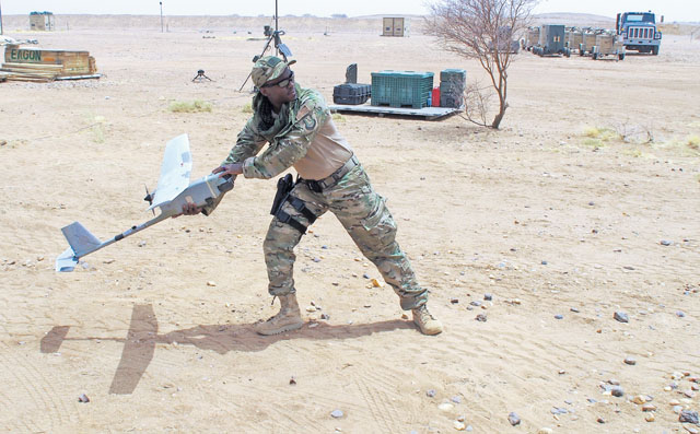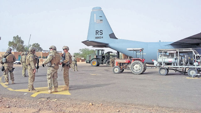 Airmen from Ramstein prepare to convoy to an airfield April 29 in Africa. The 435th Air Ground Operations Wing received cargo from a C-130J Super Hercules to improve infrastructure of a bare base and prepare it for follow-on forces.