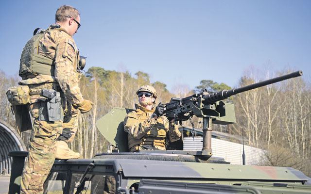 An Airman from the 435th Contingency Response Group pulls an injured team member from a Humvee April 11 on Ramstein. The Airmen practiced how to respond and resume their mission if their vehicles come under fire.