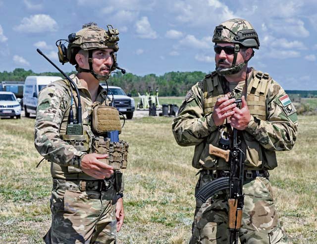 Hungarian troops look on as a U.S. Air Force Air Advisor from the 435th Contingency Response Element Squadron provides instruction on group tactics. Training partnership is an element of Swift Response 24 which took place at Kecskemet Air Base, Hungary, May 10. SR24 is a joint exercise that enables members of NATO to build strong partnerships and share best practices. Photos by Capt. Jacob Murray, 435 AGOW Public Affairs