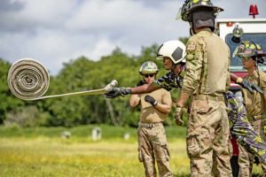 Maisiba said they lack in equipment, so having the U.S. Air Force firefighters’ support is necessary. During the training, the Airmen outfitted the Kenyan firefighters with gloves, one notable piece of equipment they do not have a lot of.