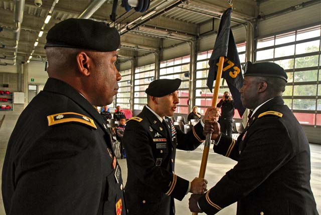 HALLE, Belgium — Soldiers from the 773rd Civil Support Team bid farewell to Lt. Col. Sandy Sadler and welcomed their new commander, Lt. Col. U. L. Armstrong, during an Oct. 30 change of command ceremony held at a fire station near Brussels, Belgium.