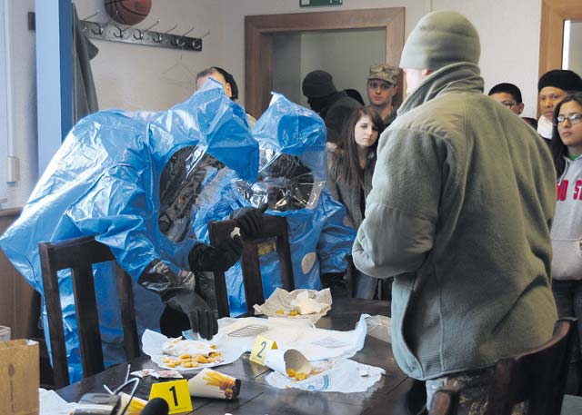 “We put the students in a (chemical protective) suit to let them check it out and see what it’s like to be in the suit,” Grande said. “Trying to gain their interest was hard in the beginning, but after they started seeing their peers in the suit they started to liven up and became very interested.”