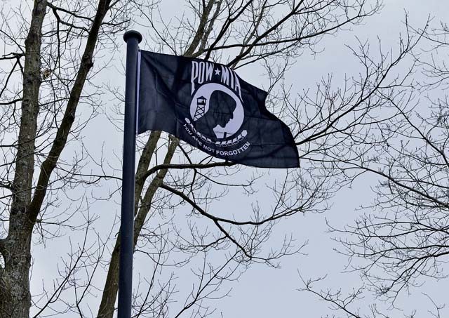 A Prisoner-of-War, Missing-in-Action flag flies during a memorial service Feb. 17 on Ramstein. The POW-MIA flag symbolizes the U.S. commitment to resolving the fates of Americans being held by enemy forces or who are unaccounted for. According to www.dpaa.mil, the total number of U.S. troops unaccounted for in past conflicts remains at 82,600 as of Feb. 7.