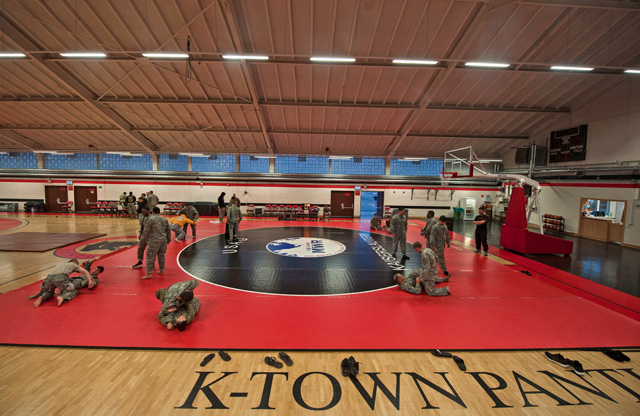 Members from the KMC warm up prior to competing in the 7th Mission Support Command’s Army Combatives Tournament Dec. 4 on Kleber Kaserne. The tournament afforded Soldiers and Airmen an opportunity to learn from one another and apply their combatives skills against other competitors.