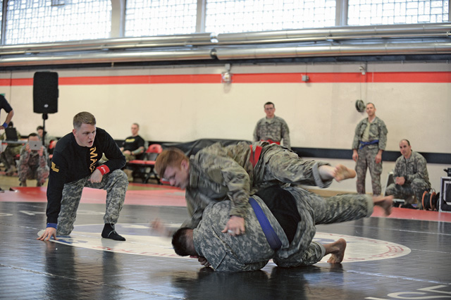 Members of the KMC compete for first place and bragging rights at the 7th Mission Support Command’s Army Combatives Tournament Dec. 4 on Kleber Kaserne.