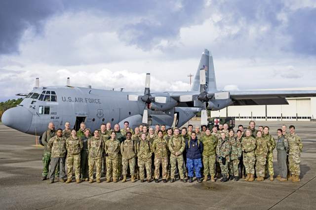 For this iteration’s mock evaluation, the 86th AES set up the entire training scenario. Preparation began the day prior, when crews worked to transform the aircraft into a fully operational AE platform, installing litters, securing stanchions and completing the configuration required for a simulated high-capacity medical evacuation mission.