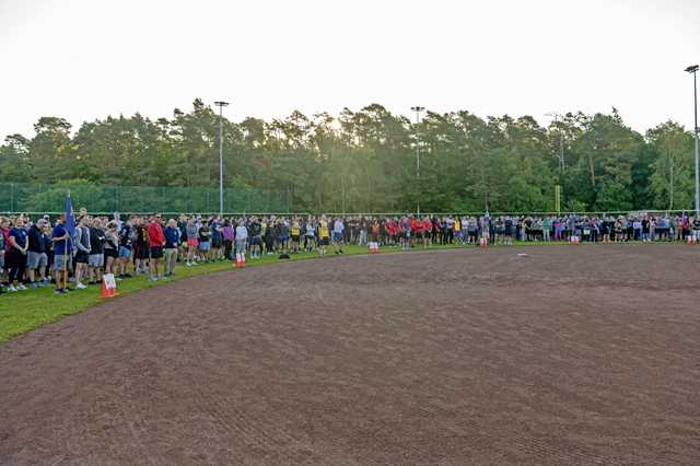 U.S. Airmen from all seven groups of the 86th Airlift Wing stand together during the opening ceremony at the fourth annual 86th AW Sports Day at Ramstein Air Base, Germany, Aug. 29, 2025. During the event, each group competed against each other in various sports to win the commander’s trophy. (U.S. Air Force photo by Airman 1st Class Jason Jones Jr.)