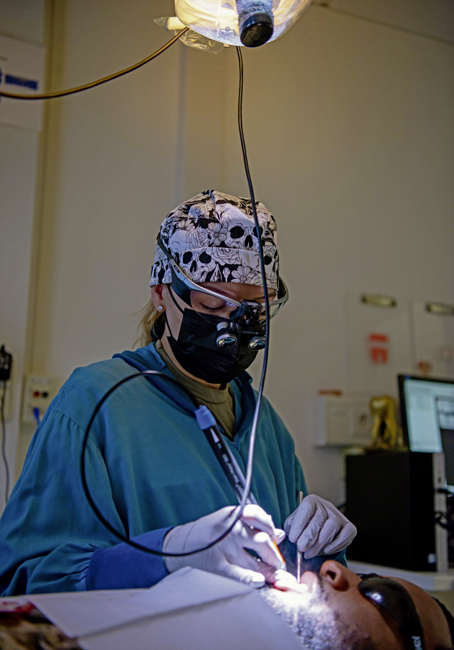 “It is entirely a team approach at the dental clinic and this broad range of specialties allows us to offer a full-scope of emergency and routine services to members,” Caine said. “These services are similar to a civilian dental practice, with the exception of elective procedures.”