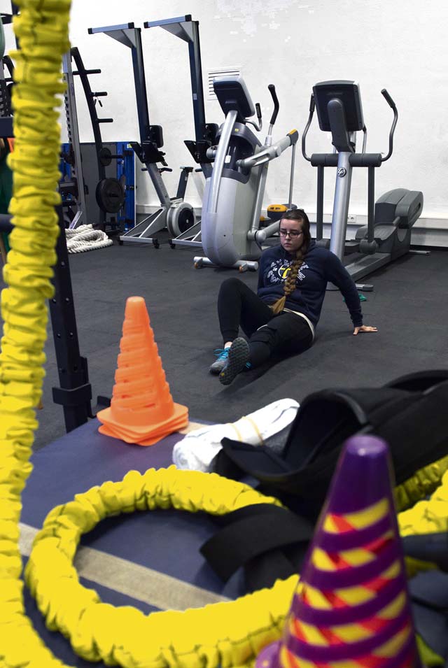 Senior Airman Larissa Greatwood, 86th Public Affairs photojournalist, performs leg raises during a knee rehabilitation class at Ramstein Air Base, Aug. 2, 2016. Patrons must receive a consult from an 86th Medical Operations Squadron physical therapist to attend a knee or back rehabilitation class.
