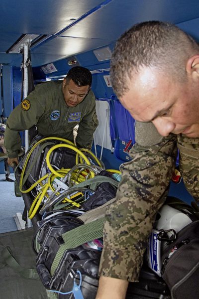 U.S. Air Force Capt. Maria Oliver, a nurse with the 86th Aeromedical Evacuation Squadron based in Ramstein, Germany, works inside a Tunisian C-130 aircraft during aeromedical evacuation training at exercise African Lion 2024 (AL24) in Tunis, Tunisia, May 2, 2024. AL24 marks the 20th anniversary of U.S. Africa Command’s premier joint exercise led by U.S. Army Southern European Task Force, Africa (SETAF-AF), running from April 19 to May 31 across Ghana, Morocco, Senegal and Tunisia, with over 8,100 participants from 27 nations and NATO contingents. (U.S. Army photo by Maj. Joe Legros)
