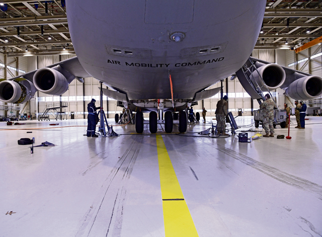 Airmen from the 521st Air Mobility Operations Wing hosted a training event at Ramstein Air Base, Dec. 11. They hosted units from Incirlik AB, Rota AB and Spangdahlem AB. Maintenance crews trained on specific engine repairs to as well as lifting a C-5 Super Galaxy aircraft. The training was designed to familiarize maintenance teams with the airframe to ensure competency and expand their knowledge on different aircraft.