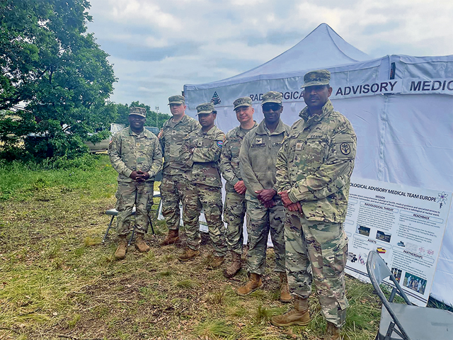 Radiological Advisory Medical Team – Europe, comprising of Soldiers from Public Health Command Europe and Landstuhl Regional Medical Center, participated in the Clean Care Exercise conducted at Bakony, Hungary, May 1–8, 2024. This was a NATO interoperability exercise that allowed allied and partner nations to practice both chemical, biological, radiological, and nuclear defense and medical capabilities in a chemical, biological, radiological, and nuclear defense environment. During the exercise, Radiological Advisory Medical Team – Europe members provided management of acute radiation casualty training, support to Decontamination/CBRN units, conducted hazard analysis of simulated radiological events, and recommended risk mitigation measures. Courtesy photo