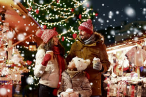 Cheerfully decorated wooden booths offer handcrafted gifts, decorations, toys, candles and ornaments. Delicious Lebkuchen (gingerbread), Rostbratwurst, crepes and sweets will let your mouth water and drinks such as spicy Gluehwein (mulled wine), punch and hot chocolate will keep visitors warm on cold winter evenings, while the aroma of cinnamon, cloves and oranges, and scented candles will lift you into the holiday spirit.