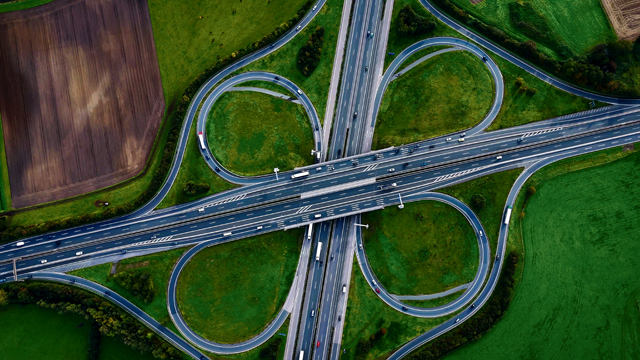 Aerial,Drone,View,Road,Junction.,Clover,Roundabout,View,From,Above.