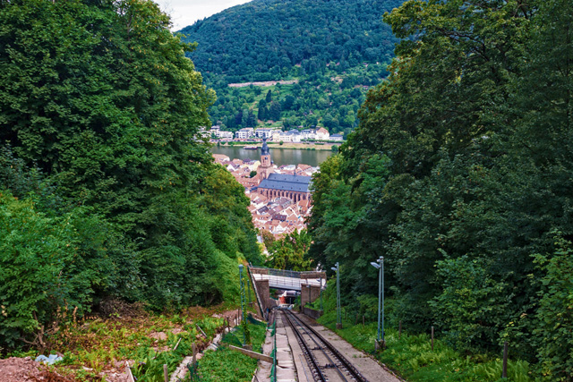 Aerial,View,And,Funicular,Track,In,Heidelberg,,Germany