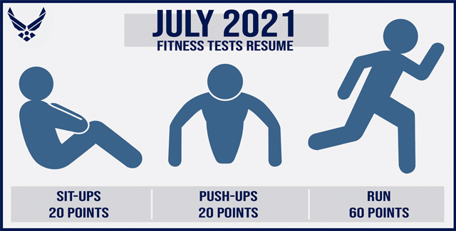 The Air Force will resume physical fitness testing July 1 with only three components: push-ups, sit-ups and the 1.5-mile run.