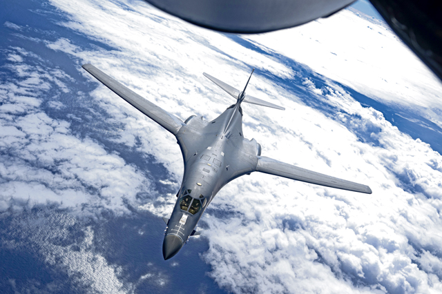 A U.S. Air Force B-1B Lancer prepares to be refueled by a KC-135 Stratotanker during exercise Rim of the Pacific over the Pacific Ocean, July 18, 2024. Twenty-nine nations, 40 surface ships, three submarines, 14 national land forces, more than 150 aircraft and 25,000 personnel are participating in RIMPAC in and around the Hawaiian Islands from June 27 to Aug. 1, 2024. (U.S. Air Force photo by Master Sgt. Chris Hibben)