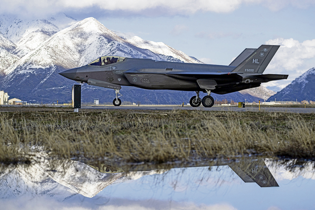 Capt. Melanie Kluesner, F-35A Lightning II Demonstration Team pilot and commander, taxis off the runway after being certified on her aerial demonstration by the 388th Wing commander at Hill Air Force Base, Utah, Feb. 22, 2024. Upon wing commander certification, the F-35 Demo Team pilot is required to complete the Air Combat Command Heritage Flight Training Course. (U.S. Air Force photo by Staff Sgt. Kaitlyn Ergish)
