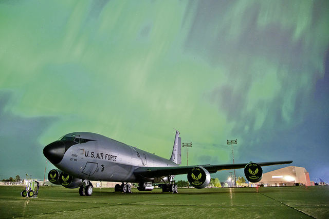 A KC-135 Stratotanker from the 127th Wing, Michigan Air National Guard, rests on the flight line Aug. 12, 2024, at Marquette Sawyer International Airport in Marquette, Mich. Four tankers from the wing’s 127th Air Refueling Group are currently based at the northern Michigan airport while home station Selfridge Air National Guard Base resurfaces its runway. (Courtesy photo)